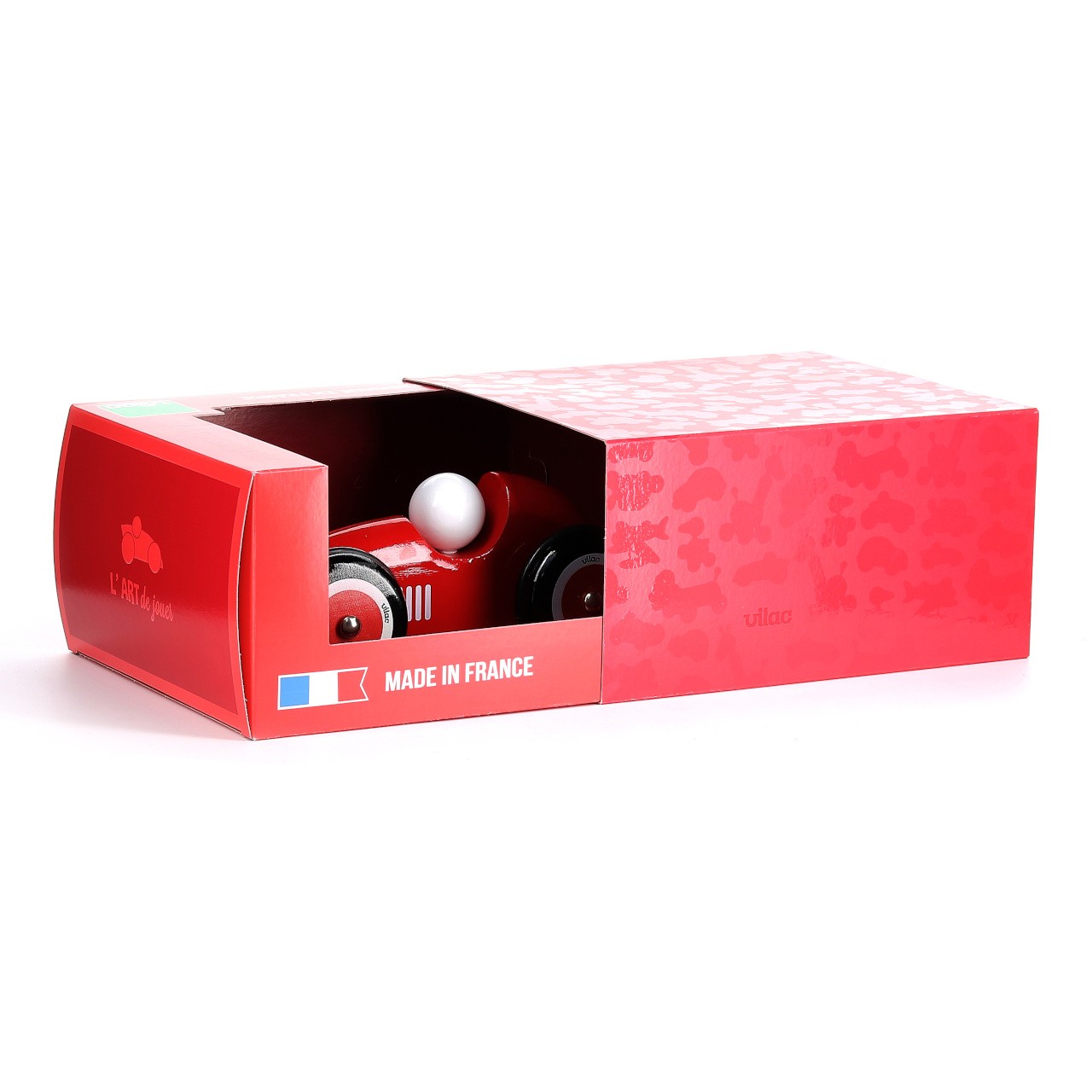Velké dřevěné autíčko jedinečných tvarů a barev, které v každém, malém i velkém, řidiči vzbudí nadšení a chuť závodit. Svým provedením snadno osloví dospělé sběratele a i díky rozměrům se hravě stane nepřehlédnutelným doplňkem interiéru. Součásti autíčka jsou z masivního dřeva lakovaného tradičním procesem ponořování do lázní s barvou. Robustní kola se vyznačují hladkým chodem a jsou opatřena gumovými kroužky, díky kterým hračka při pohybu nepůsobí zbytečný hluk. Vyrobeno ve Francii, dodáváno v prémiové krabičce.   Hlavní vlastnosti:jedinečný design a zpracovánítichý a kultivovaný chodvyrobeno ve Francii