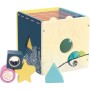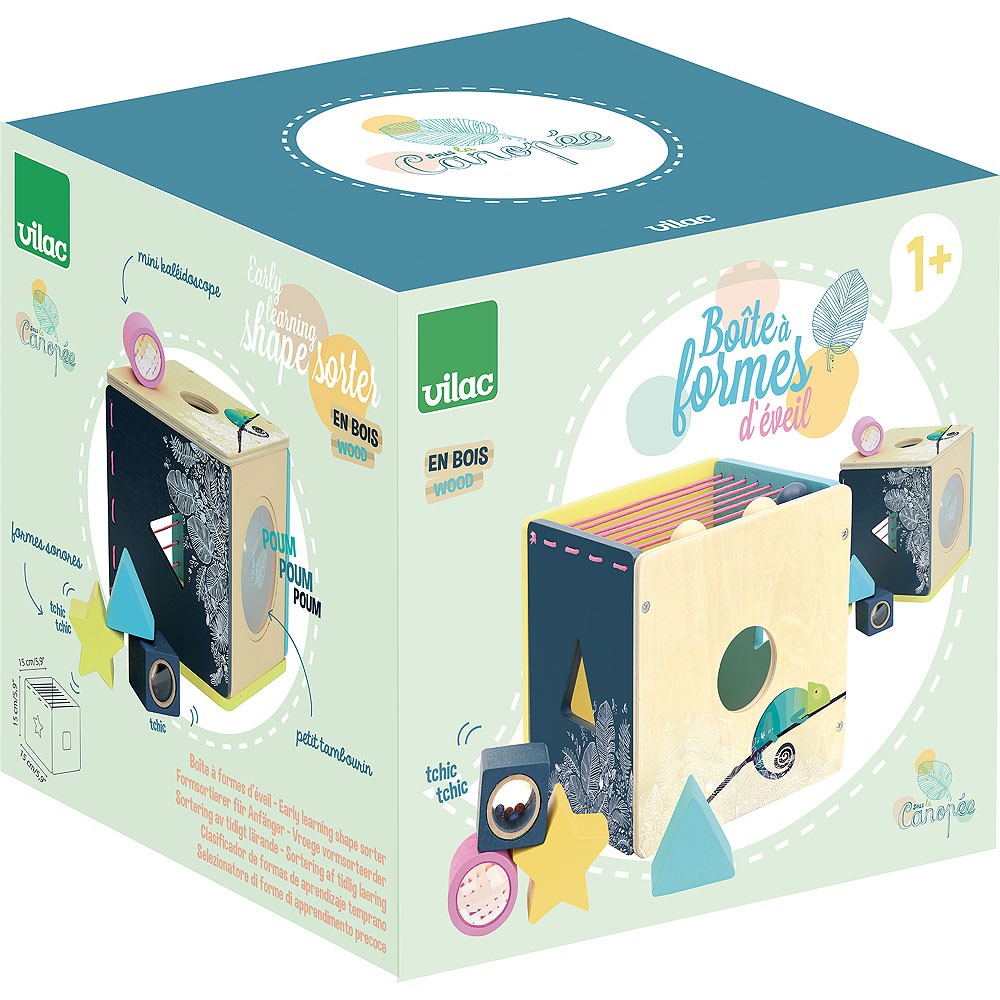 Vkládací dřevěná kostka s 4 různými tvary. Kaleidoskopický válec, zvuková kostka, hvězdička a trojúhelník pomohou rozvíjet jemnou motoriku, senzorické funkce a poznávání barev při vkládání do příslušných otvorů motorické kostky. Z jedné strany má kostka pružné šňůrky s korálky. Hlavní vlastnosti: moderní originální designnové herní prvky v podobě senzorických kostek a pružných šňůrekrozvíjí motoriku, senzorické funkce a poznávání barev