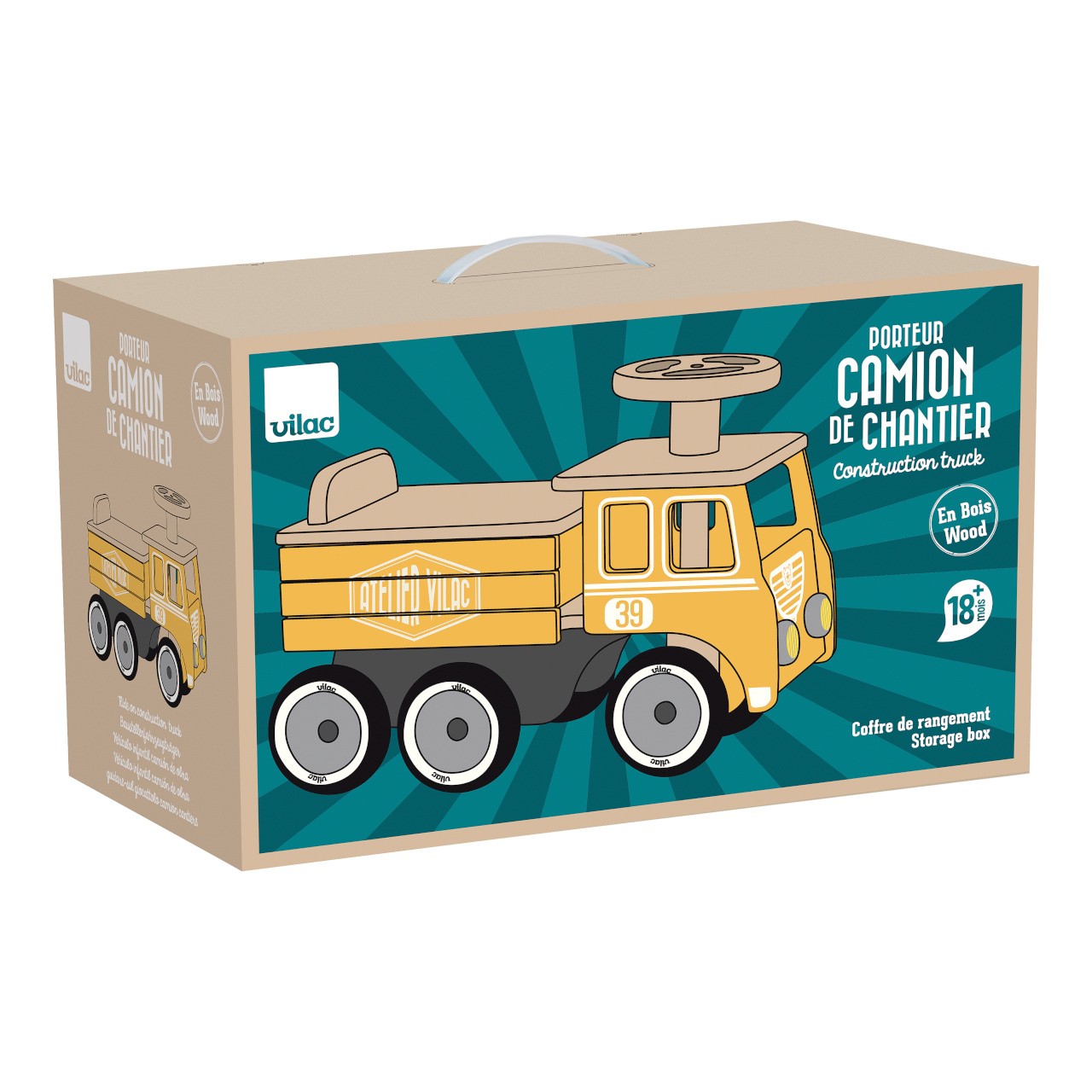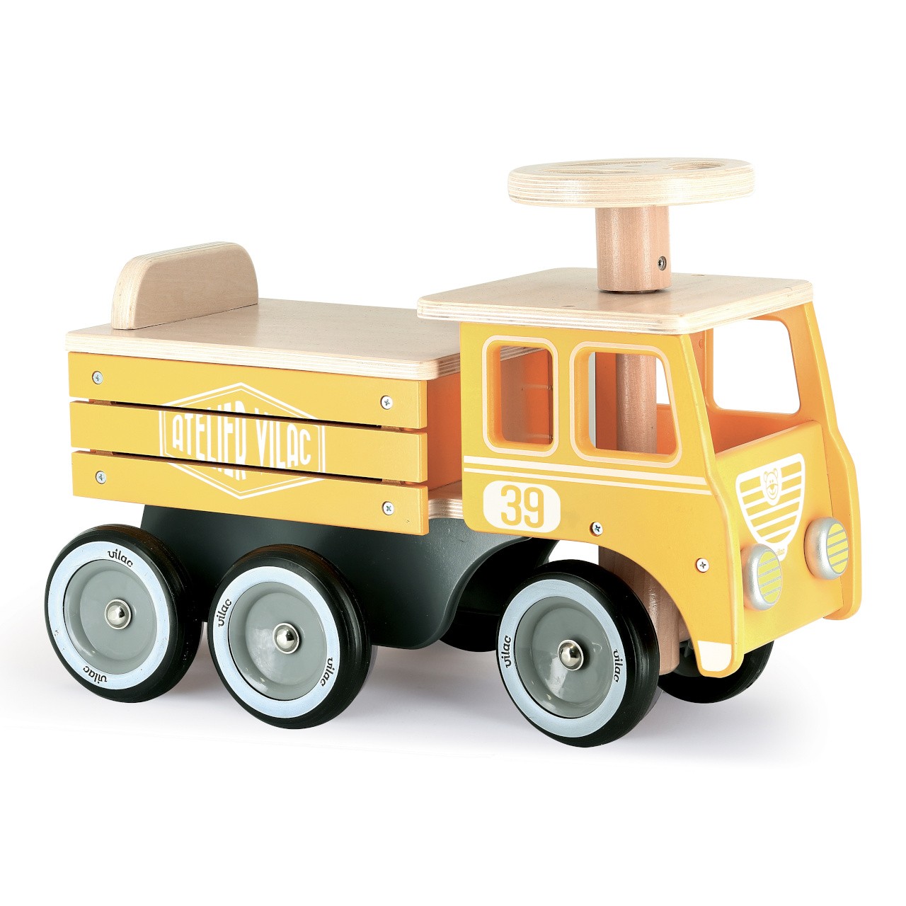Pány staveniště s velkým a silným náklaďákem! Atraktivní a propracované odrážedlo s praktickým úložným prostorem pod sedadlem, kam lze uschovat oblíbené hračky. Vozítko vyniká výjimečně robustní konstrukcí využívající silnou překližku i díly z masivního dřeva. Úhel otáčení jeho volantu je omezen tak, aby byla zaručena stabilita a nehrozil pád dítěte. Plastová kola jsou opatřena odolnými pneumatikami, které tlumí hluk a zároveň zlepšují jízdní vlastnosti. Bezpečnost odrážedla byla i laboratorně ověřena, Vaši nejmenší tak mohou bez obav vyrazit za dobrodružstvím. Výrobek vyžaduje montáž, dodáváno s obrázkovým návodem k sestavení.   Hlavní vlastnosti:úložný prostortichý a kultivovaný chodjedinečný design a zpracovánírobustní a stabilní dřevěná konstrukce