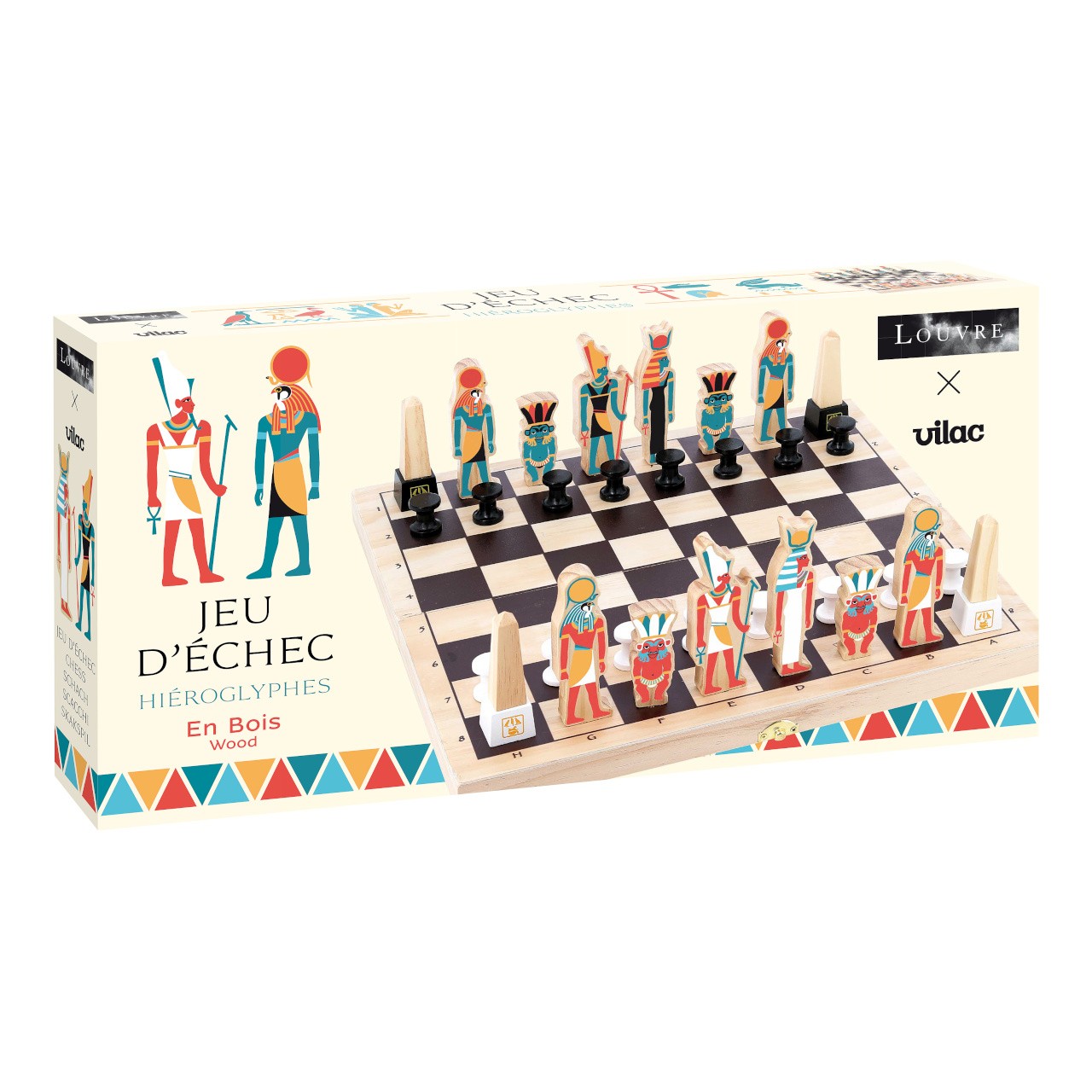 Máte zálibu ve starověkém Egyptě? Vyzkoušejte šachy s figurkami v podobě starověkých artefaktů a ikon inspirovaných expozicí egyptských památek muzea Louvre. Atraktivní zpracování zaujme a upoutá pozornost, kterou můžete zábavně zúročit, rozvíjet soustředění a strategické myšlení. Souprava se stane nepřehlédnutelnou ozdobou poliček a stolků v dětských pokojích, klubovnách a hernách. Hrací plocha je skládací, hru proto lze prakticky uklidit a může Vás provázet na cestách. Hlavní vlastnosti:hrací deska a 32 figurekpraktické a skladné baleníjedinečný design a zpracování