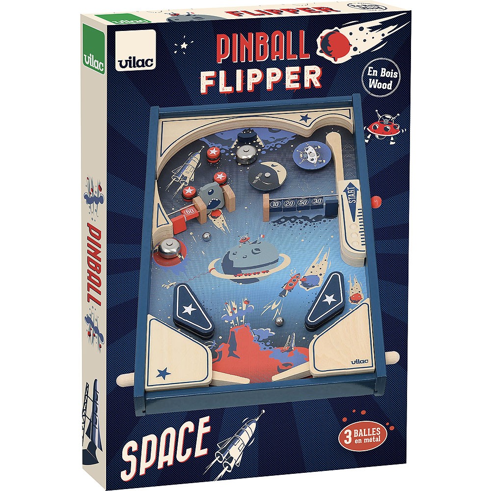 3, 2, 1… a letíme napříč vesmírem! Roztočte raketu, vesmírnou stanici a hlavy Marťanů uprostřed planet, jen dejte pozor na to, abyste brzy neztroskotali! Dřevěný stolní pinball poskytne dětem spoustu zábavy. A třešnička na dortu, tento pinball funguje bez baterií, vše je mechanické! Hlavní vlastnosti: zábavná postřehová hra rozvíjí motoriku dětíkovové kuličky se vystřelijí mechanickyoriginální retro vzhled