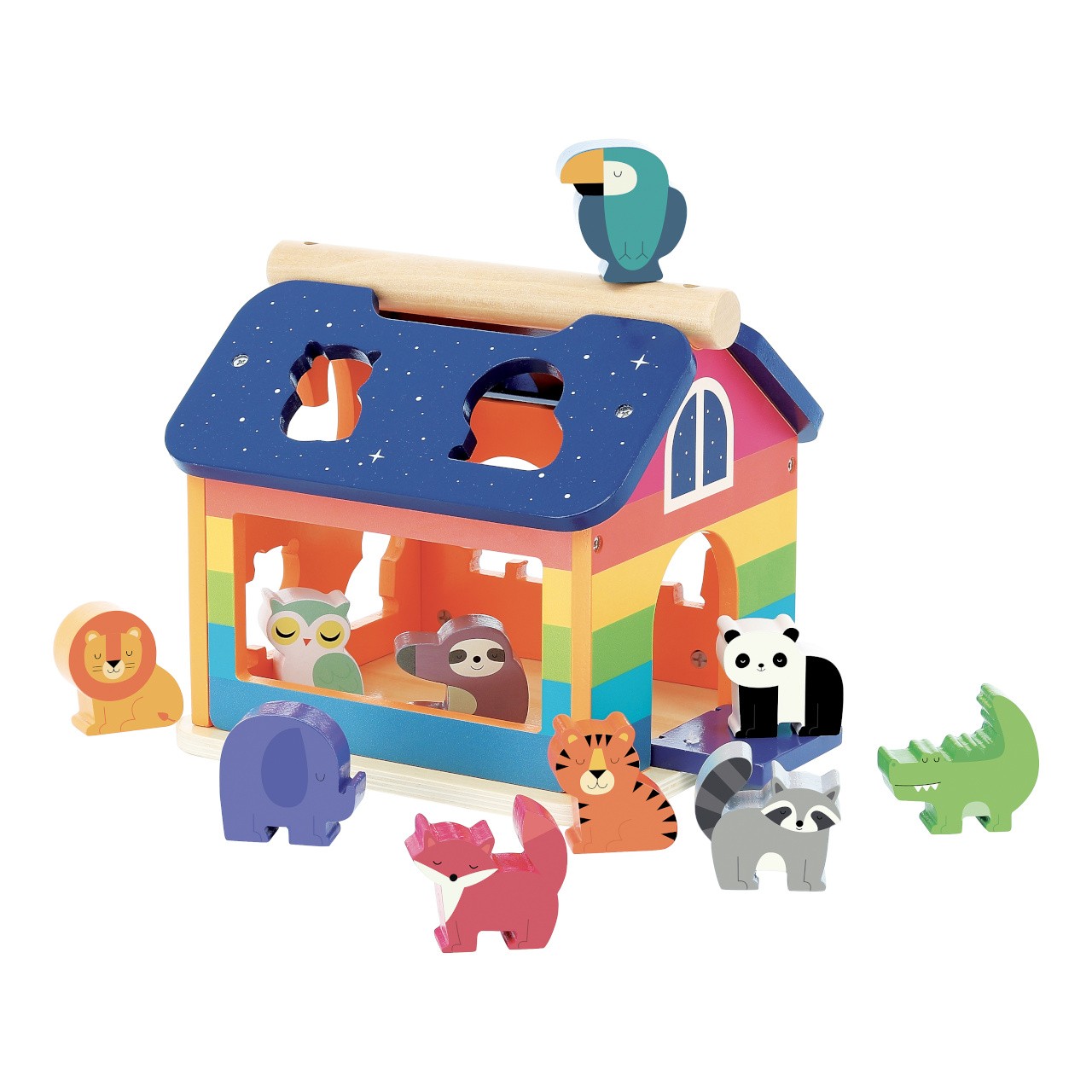 Tříděním a přemisťováním zvířátek se děti zábavně učí rozeznávat tvary, a lze je tak po krůčcích vést k samostatné hře v souladu s výukovými metodami Montessori. Rozmanité pestrobarevné figurky mohou správným pojmenováváním a přiřazováním charakteristických vlastností pomoci s rozvojem poznávacích dovedností a fantazie. Domeček je vybaven otevíratelnými dvířky, které jsou pružně zavěšeny tak, aby dětským prstíkům nehrozilo skřípnutí. Praktické madlo na střeše umožňuje snadnou manipulaci a přenášení. Hračka kombinuje robustní díly z masivního dřeva a odolné překližky, které zaručují vysokou životnost. Hlavní vlastnosti:domeček a 10 vkládacích figurekdesign Andy Westfaceatraktivní a odolné zpracování Andy Westface je ilustrátor žijící a působící v Hongkongu. Svou prací se snaží zprostředkovat silné pocity a jasné myšlenky za pomoci jednoduchých tvarů, kompozic i barevnosti. Typickými prvky jeho děl jsou zvířata a duha, které si oblíbil pro jejich čistotu, upřímnost a schopnost vzbuzovat radost.