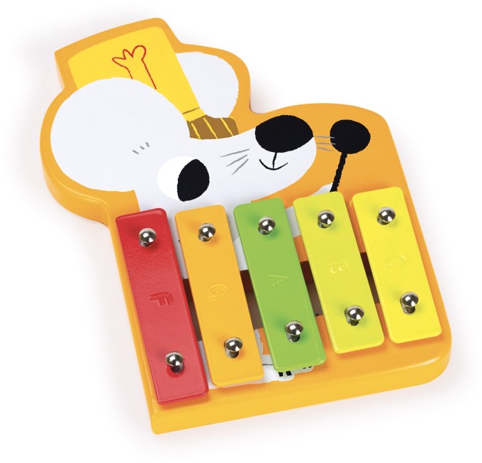 Vícebarvný xylofon s myšákem, díky kterému se menší děti naučí poznávat barvy a starší skládat melodie.