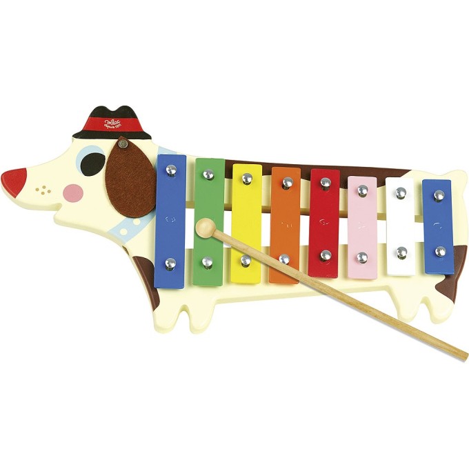Vícebarevný xylofon ve tvaru pejska, díky kterému se menší děti naučí poznávat barvy a starší skládat melodie. V balení s jednou paličkou a notami. Ilustrováno Ingelou P. Arrhenius.  Hlavní vlastnosti: prohlubuje lásku k hudbě a rytmikukovové klapkydesign Ingela P. Arrhenius   Švédská umělkyně Ingela Peterson Arrhenius se narodila v roce 1967. Umění a design měly vždy místo v jejím životě a než začala její kariéra ilustrátorky, Ingela pracovala jako umělecká vedoucí ve Stockholmu. Poté studovala reklamní a grafický design na umělecké škole také ve Stockholmu. V roce 1992 začala podnikat jako ilustrátorka na volné noze a pracovala mezinárodně napříč reklamou, designem, nakladatelstvím… V minulosti vytvářela tiskové vzory pro tkaniny, tapety, papírnictví, také pracovala na obalech, produktovém designu, bytových doplňcích a hračkách. Její plakáty a designové hračky najdete po celém světě. Má vášeň pro retro styl, což je jasně vidět na jejich dílech a také v jejím nadšení pro typografii a barvy. Nyní žije ve Stockholmu s manželem a dvěma syny.