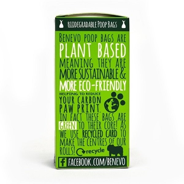 Vrecká na exkrementy Benevo sú vyrobené z udržateľného a ekologického kukuričného škrobu. Tieto certifikované kompostovateľné vrecká na exkrementy sú doslova tak ekologické, ako len môžu byť!