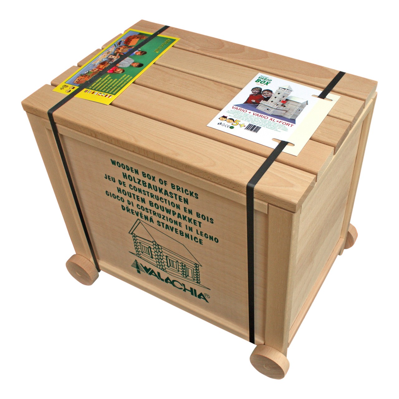 Variabilní stavebnice české výroby umožňuje sestavovat a znovu rozebírat rozmanité typy budov. Skládá se zejména z robustních kulatých, pečlivě opracovaných bukových dřívek s půlkulatými zámky, manipulace s nimi je výjimečně snadná a bezpečná. Obsahuje však také řadu precizně zpracovaných dílů dveří a oken, kompletní soupis jednotlivých součástí naleznete níže. Stavebnice řady Vario jsou mezi sebou kompatibilní, lze je kombinovat a vytvářet stále nové, rozmanité stavby, mohou tak růst spolu se schopnostmi a dovednostmi dětí. Přírodní povrchová úprava dílů umožňuje individuální úpravy jejich vzhledu, lze je lakovat a barvit dle fantazie. Díky svým jedinečným vlastnostem a zpracování může stavebnice nabídnout vysokou životnost a představovat zábavu předávanou po generace. Tato velká souprava je kombinací dílů sad VARIO (72 dílů), VARIO XL (184 dílů) a VARIO FORT (194 dílů). Je dodávána v robustní bedýnce vyrobené z pečlivě opracovaného masivního dřeva a překližky, umožňuje tak sezení a může tvořit součást nábytkového vybavení dětského pokoje. Pro snazší manipulaci je krabice také opatřena pojezdovými kolečky.   Hlavní vlastnosti:450 dílů celkem (obsahuje díly sad VARIO, VARIO XL a VARIO FORT)precizní a pečlivé zpracováníz odolného masivního bukového dřevakompatibilní s dalšími stavebnicemi řady Variobaleno v robustní nábytkové bedýnce s kolečkyvyrobeno v České republice   Soupis dílů řady stavebnic Vario:     Ukázka stavby a velikosti dílů, video je pouze ilustrační.   Dokumentace:návod k základní stavběbrožura stavebnice k vytištění     Označení „Správná hračka“ je udělováno produktům, které cílí na děti předškolního věku a vynikají zejména výchovnými kvalitami, ale i vysokým standardem zpracování, komfortem používání a estetickou úrovní. Záměrem tvůrců ocenění je poskytovat vodítko a oslovovat rodiče i pedagogy, kteří chtějí ovlivňovat směřování nabídky a za prvořadý považují zdravý osobnostní rozvoj dětí. Tím chtějí tvůrci podněcovat k rozšiřování a vývoji nových hodnotných hraček či her. Označení je udělováno od roku 1994 a je společným projektem Sdružení pro hračku a hru, Asociace hračka Unie výtvarných umělců ČR a Asociace předškolní výchovy. Tato sdružení společně s Uměleckoprůmyslovým muzeem v Praze a Městským muzeem v Kamenici nad Lipou udělují ocenění při příležitosti festivalu Hračkobraní konajícího se každoročně od roku 2006 na zámku v Kamenici nad Lipou, kde můžete mimo jiné zhlédnout stálou expozici všech oceněných hraček.