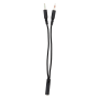 Headset využívá 3,5mm čtyřpinový jack s přiloženým adaptérem na 2× 3,5mm konektor pro kompatibilitu s širším spektrem zařízení.