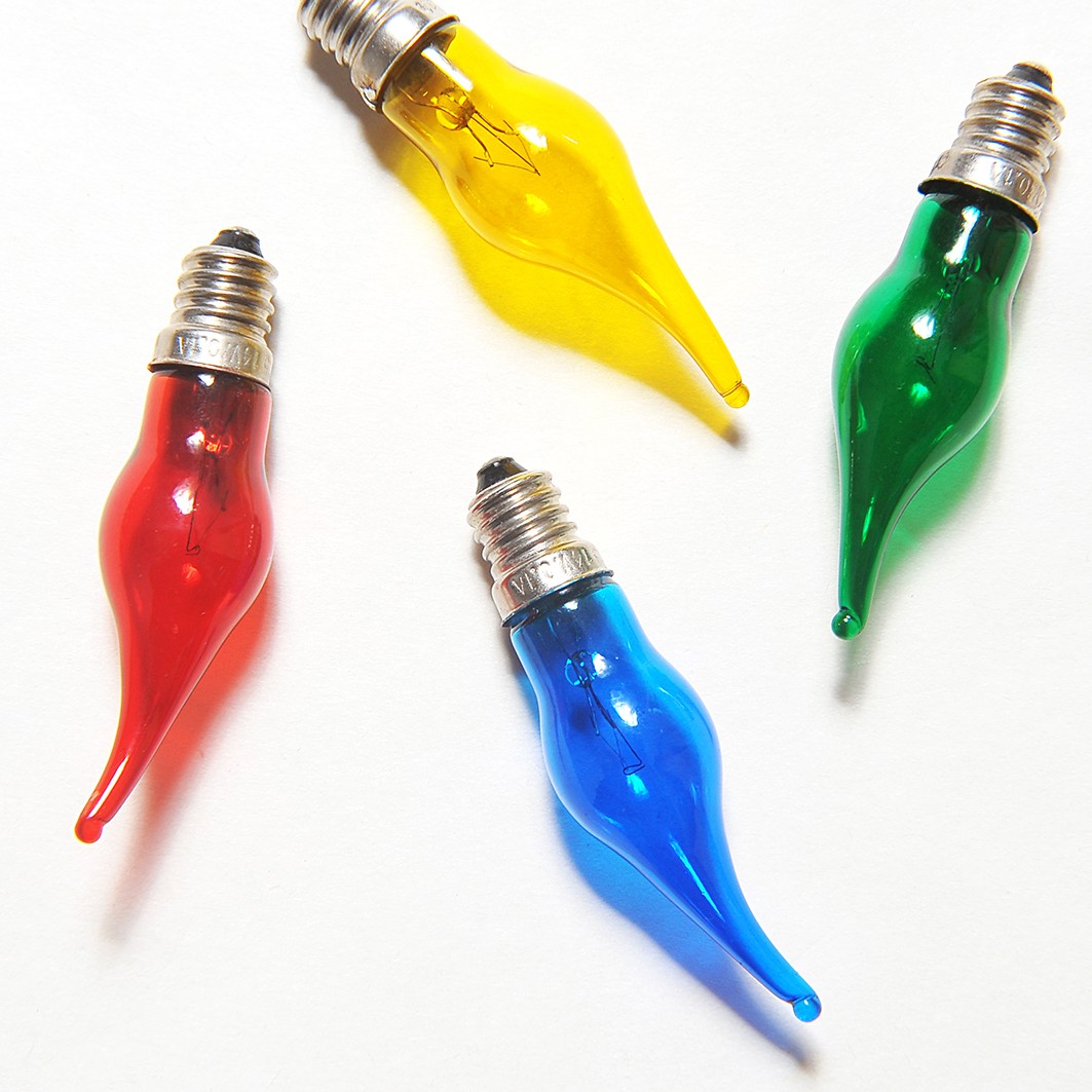 Tradiční skleněná žárovka ruční výrobyBalení obsahuje 64 ks žárovek, mix všech barev (modrá, červená, zelená, žlutá)Menší množství žárovek je možno zakoupit na blistrech po 4 ks